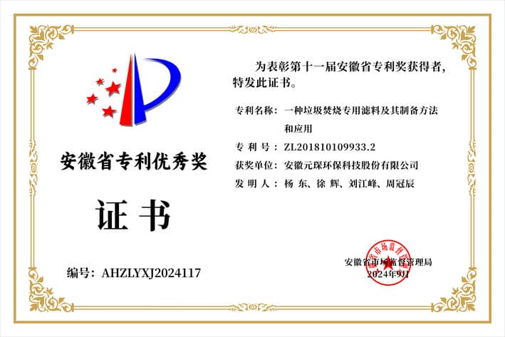 安徽省专利优秀奖证书