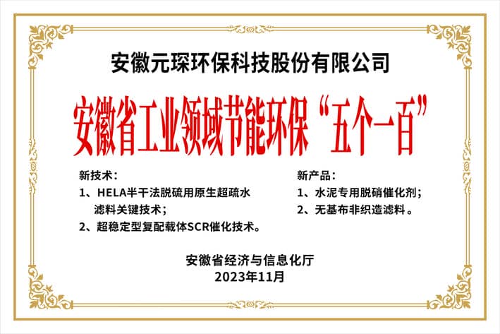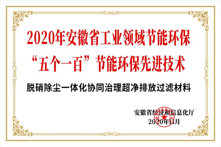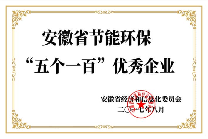 安徽省节能环保五个一百优秀企业