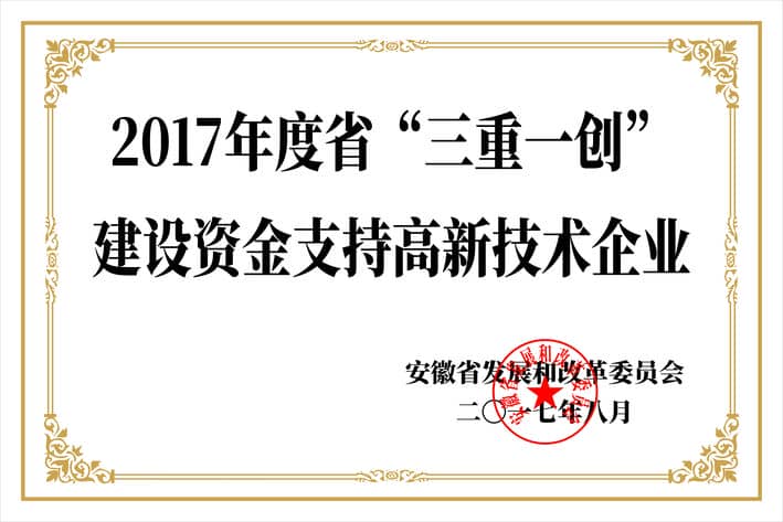 2017年度省三中一创建设资金支持高新技术企业