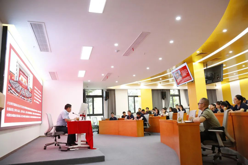 梁华友则从习近平新时代中国特色社会主义思想的世界观和方法论,以及以伟大自我革命引领伟大社会革命的重要要求,团结奋斗的时代要求等方面进行宣讲。他结合企业的实际情况,强调全体党员干部要立足本岗位,发挥党员先锋模范作用,为企业的高质量发展贡献力量。
